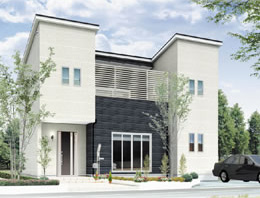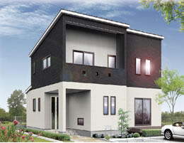 インパクト大の外観は、こだわり派の方にぴったり。リビング階段が家族の触れ合いを生み出します。ライフスタイルの変化に合わせてフレキシブルに使える洋室も便利。