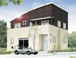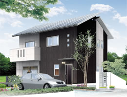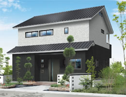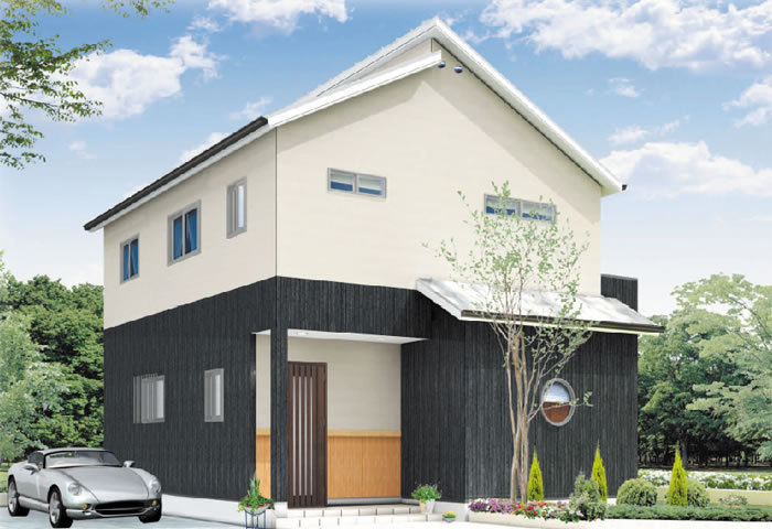 形はオーソドックスながらも、切り替えが巧みに盛り込まれた外観デザインはオリジナリティたっぷり。ゆったりとしたLDKや2階ホールなど、 暮らしの愉しみ方が広がる設計です。