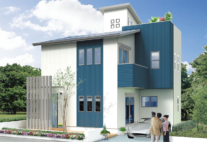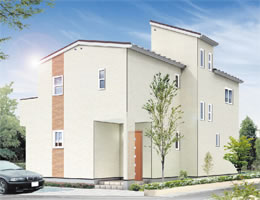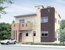 ブラウンを基調としたカラーリングで、ナチュラルな優しい雰囲気が溢れる外観に。1階には家族共有のスペースを、2階には個々の部屋を設けた機能的な間取りです。スカイバルコニーも共有空間として色々と活用してください。