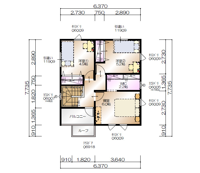■1F面積/57.96m2 ■2F面積/49.68m2 ■延床面積/107.64m2(32.50坪) ■販売施工面積/115.10m2(34.75坪)