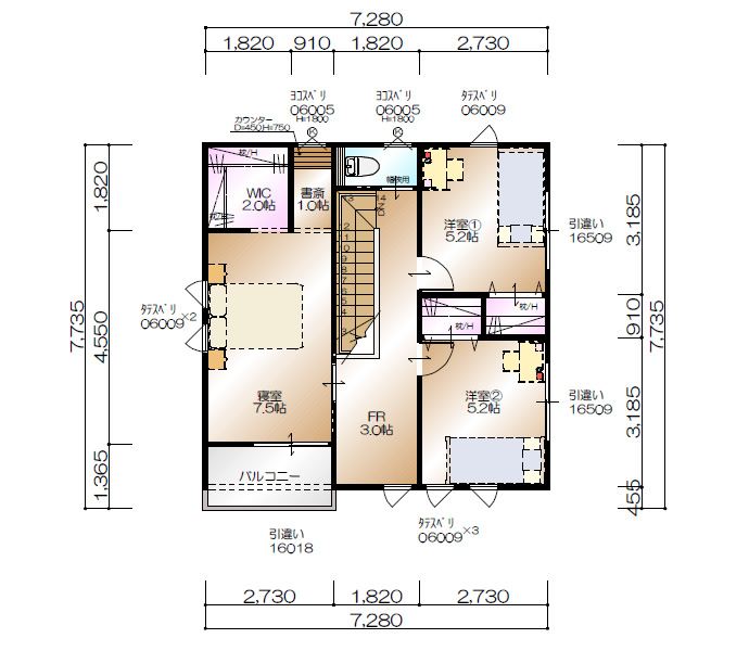■1F面積/51.75m2 ■2F面積/50.51m2 ■延床面積/102.26m2(30.87坪) ■販売施工面積/107.23m2(32.37坪)