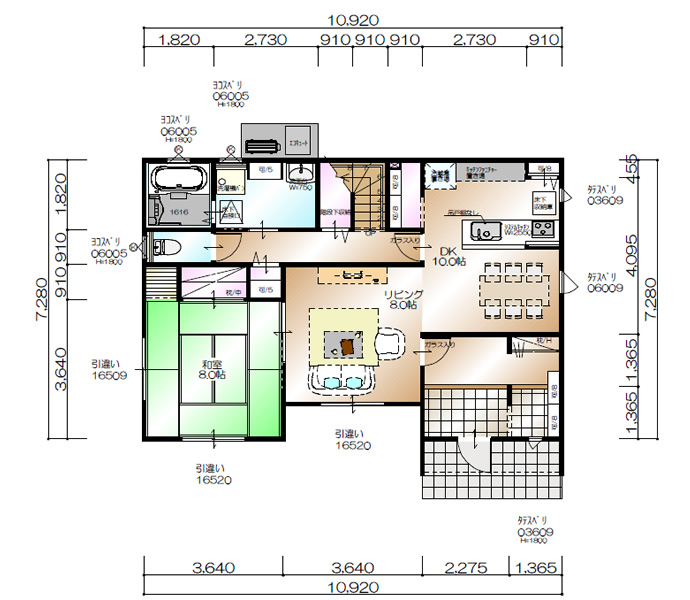 ■1F面積/76.18m2 ■2F面積/64.59m2 ■延床面積/140.77m2(42.50坪) ■販売施工面積/150.70m2(45.50坪)