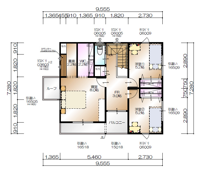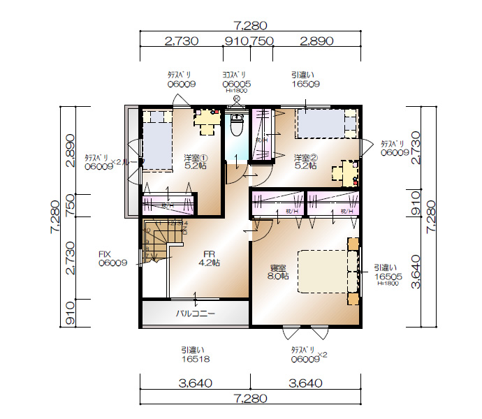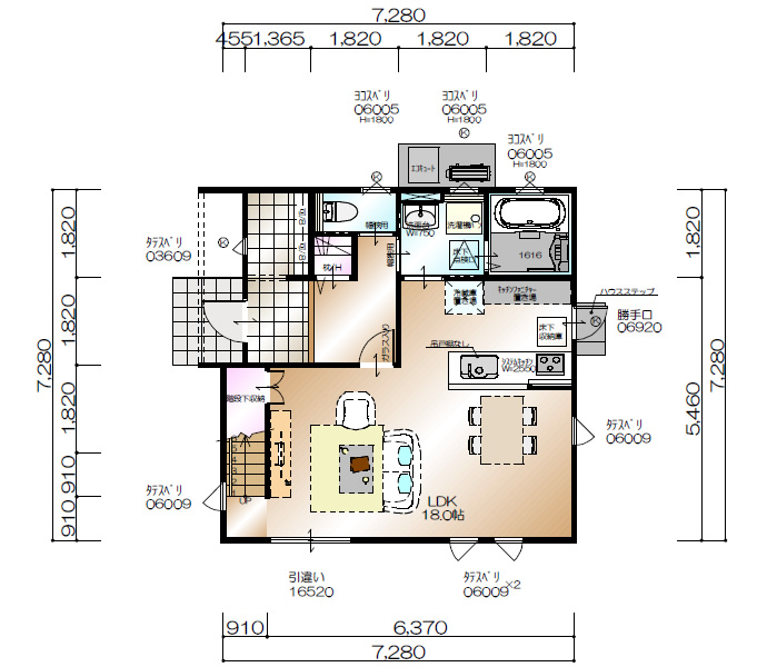 ■1F面積/51.34m2 ■2F面積/52.17m2 ■延床面積/103.51m2(31.25坪) ■販売施工面積/110.96m2(33.50坪)