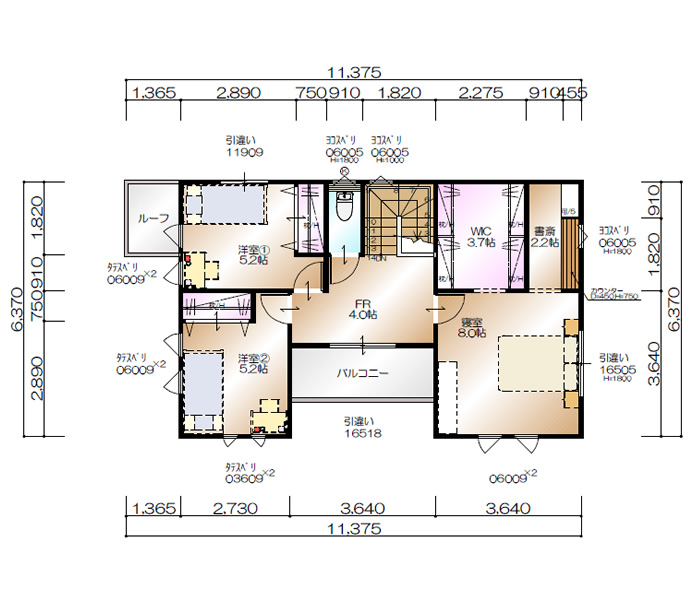 ■1F面積/46.37m2 ■2F面積/43.88m2 ■延床面積/90.25m2(27.25坪) ■販売施工面積/95.22m2(28.75坪)