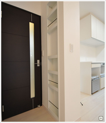 玄関/玄関ホールには小窓を設けて採光を確保。